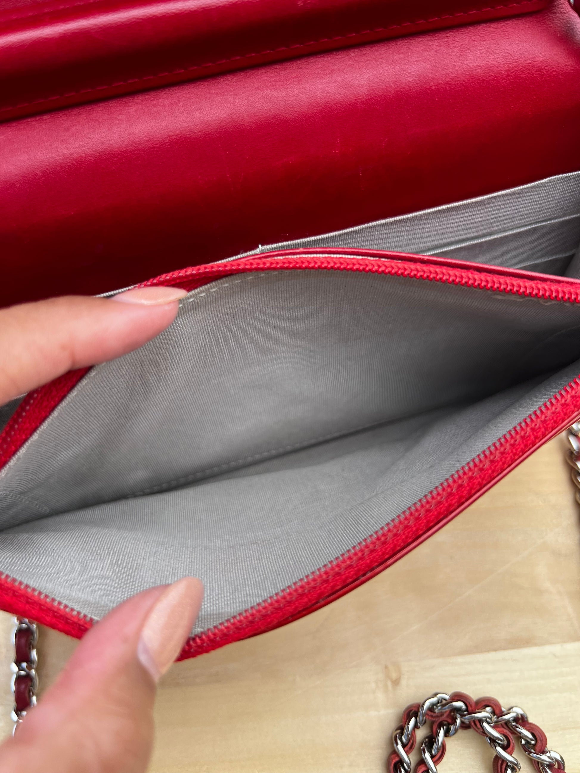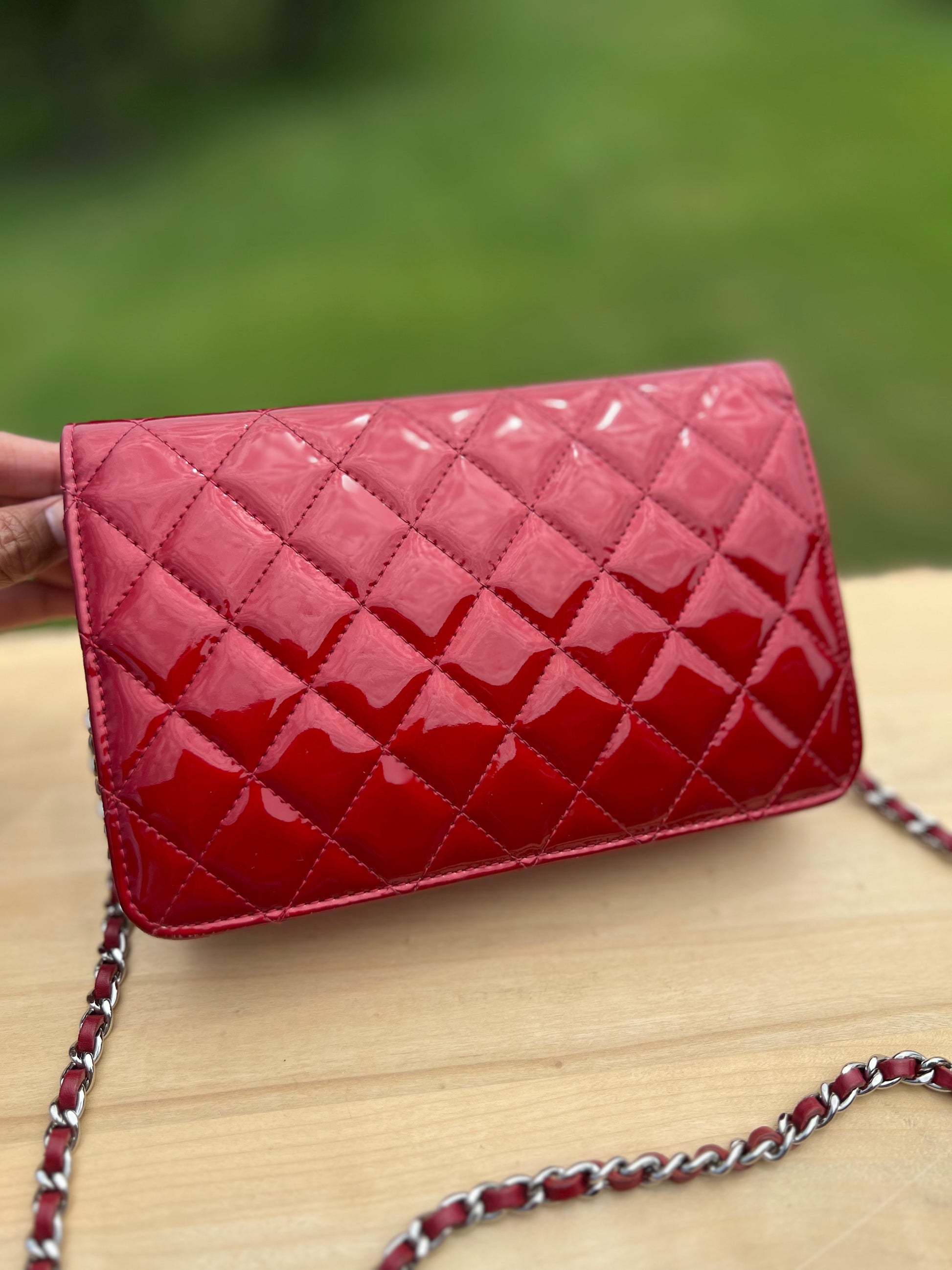 CHANEL Red Patent Quilted Leather - Classic Wallet on Chain (WOC)