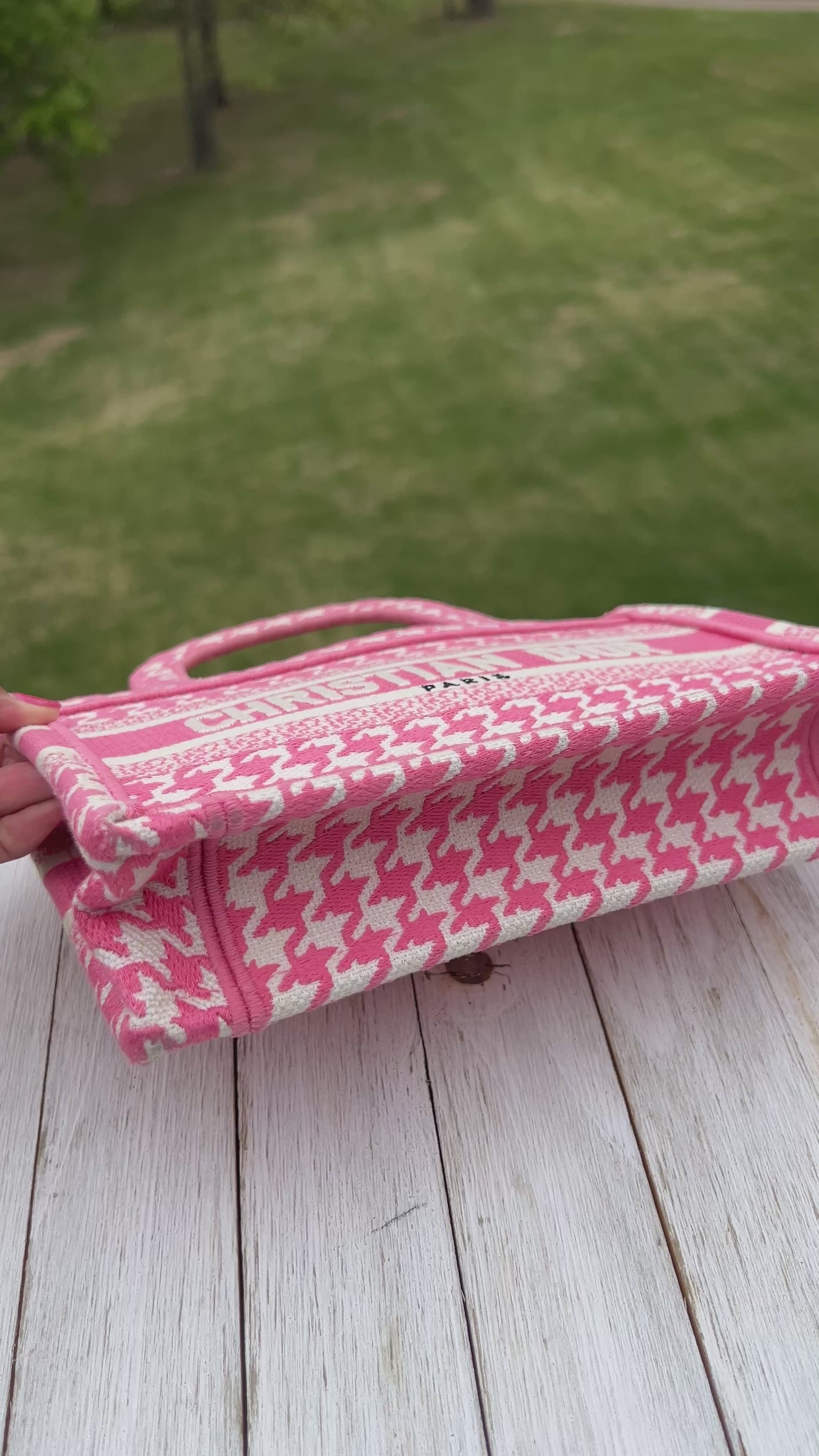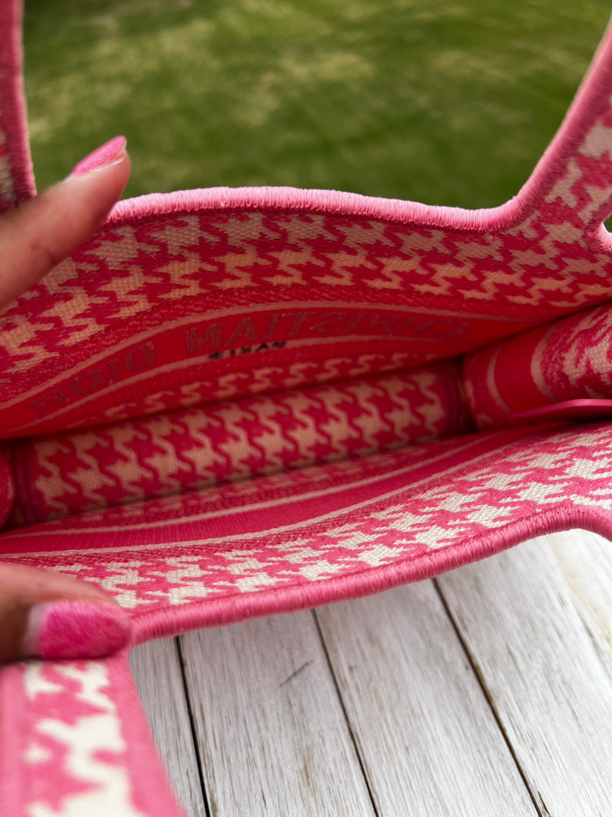 Crafted with exquisite attention to detail, the CHRISTIAN DIOR Canvas Embroidered Mini Toile De Jouy Book Tote is the perfect addition to any wardrobe. The pink and white canvas stitching showcases the iconic fashion house's name, while the spacious interior offers both style and functionality. Elevate your everyday look with this elegant and timeless piece.