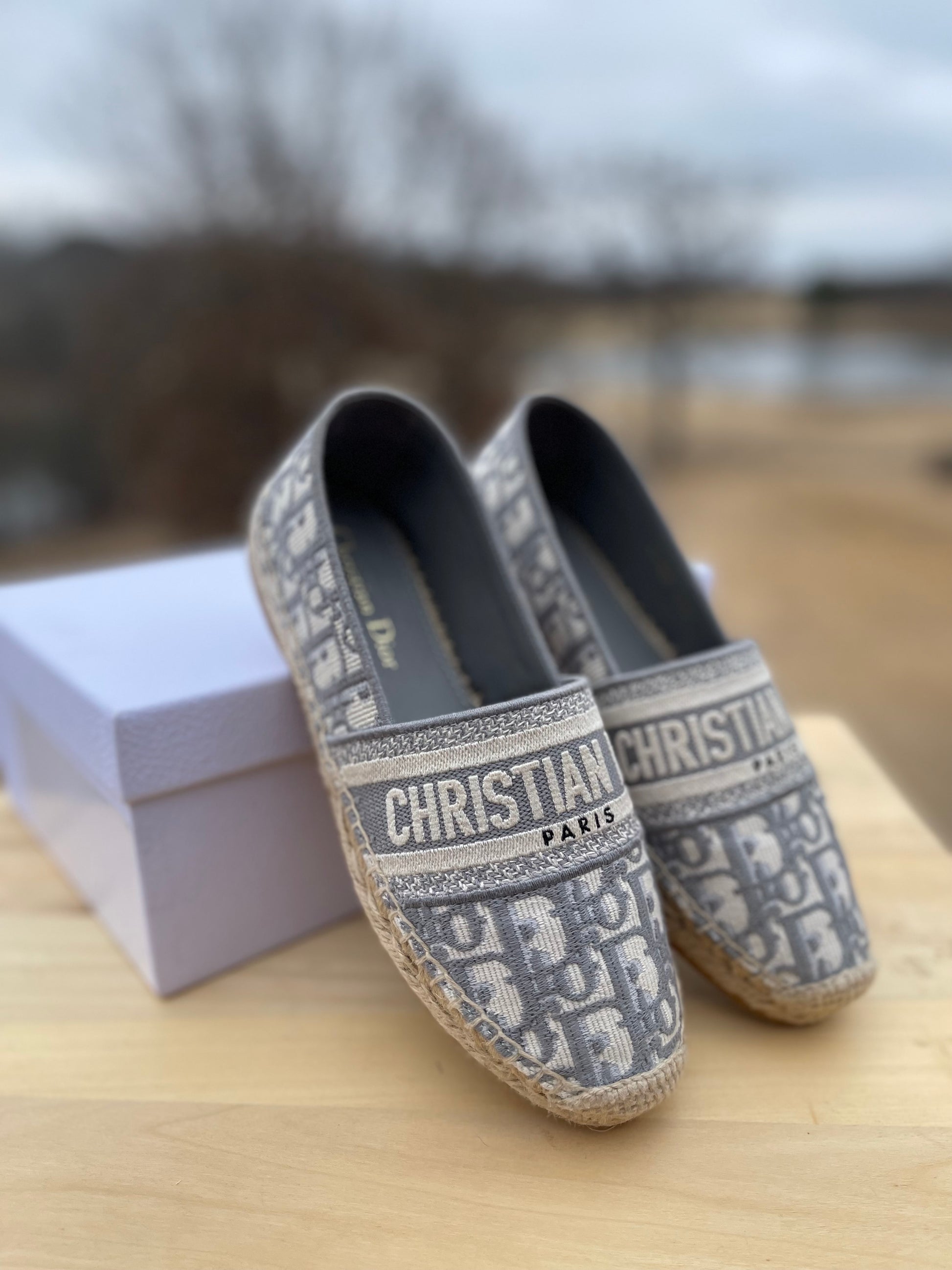 Step into casual luxury with these Christian Dior espadrilles in the iconic Oblique pattern. Perfect for lazy brunches, strolls by the shore, or flaunting your designer style without even trying. Who needs heels when chic comfort looks this good?
