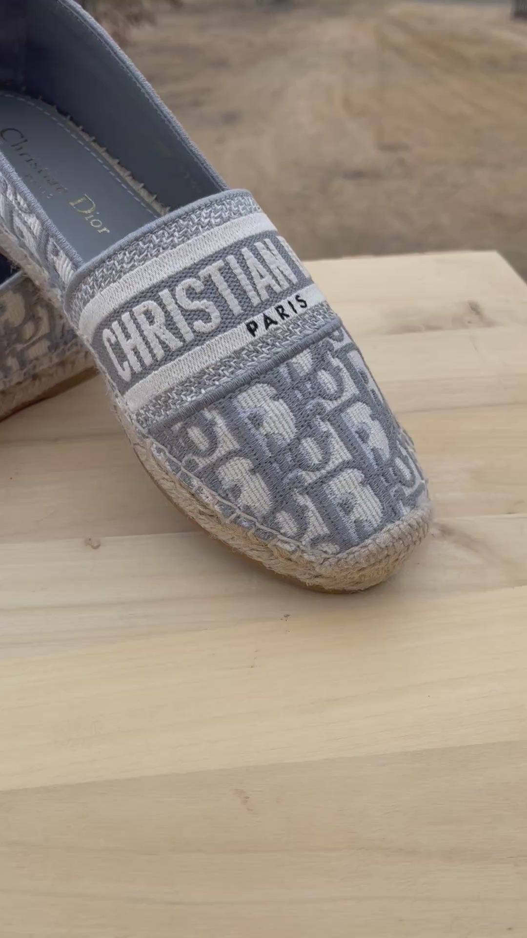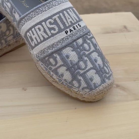 Dior Granville Espadrille Stone Gray Dior Oblique Embroidered Cotton