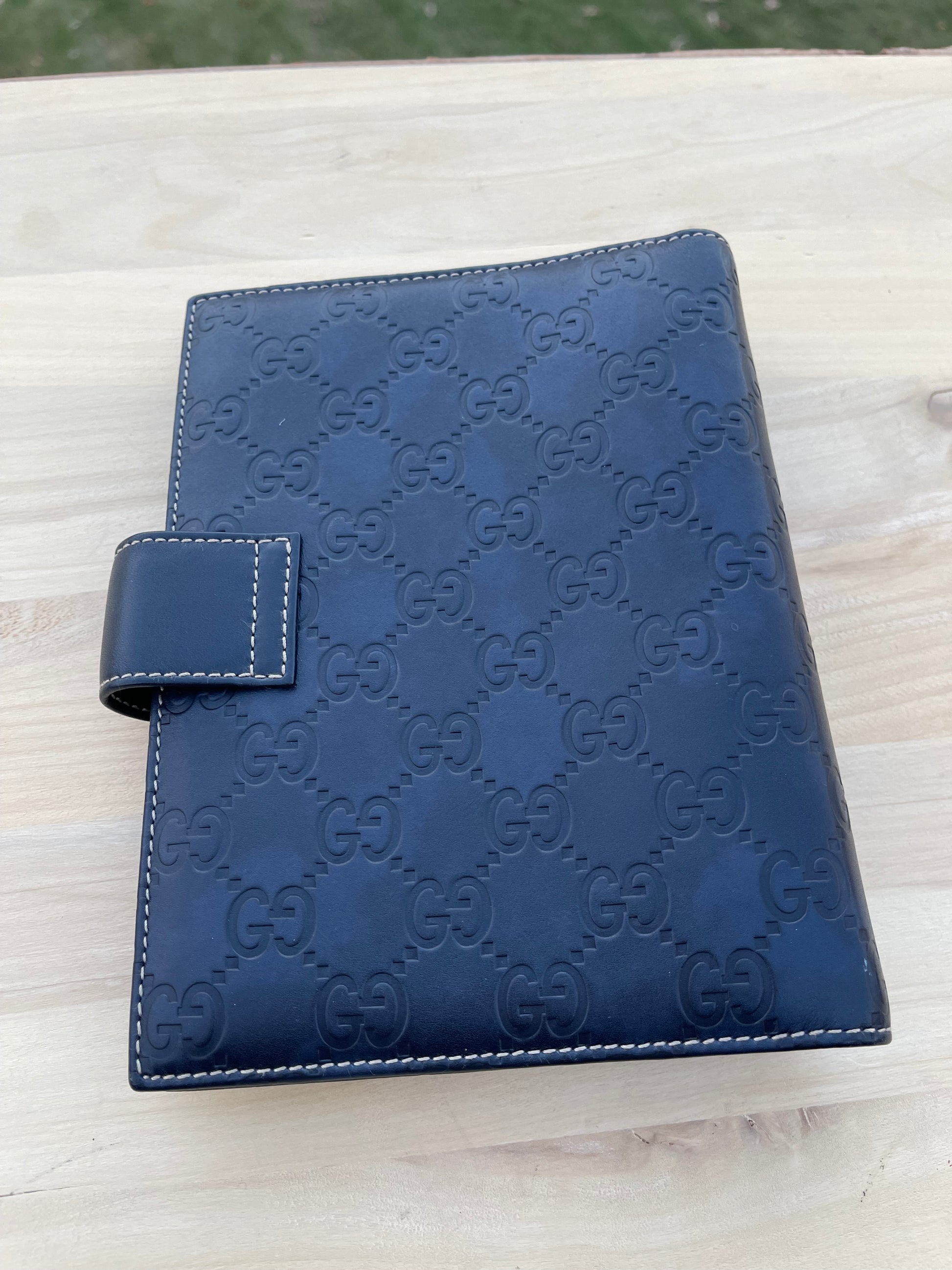 Elevate your organization game with the GUCCI Guccissima Standard Agenda MM. Crafted in monogram leather, this chic agenda features a cross-over strap and gold rings for inserts. Stay stylish and organized with this practical and fashionable accessory from Gucci!