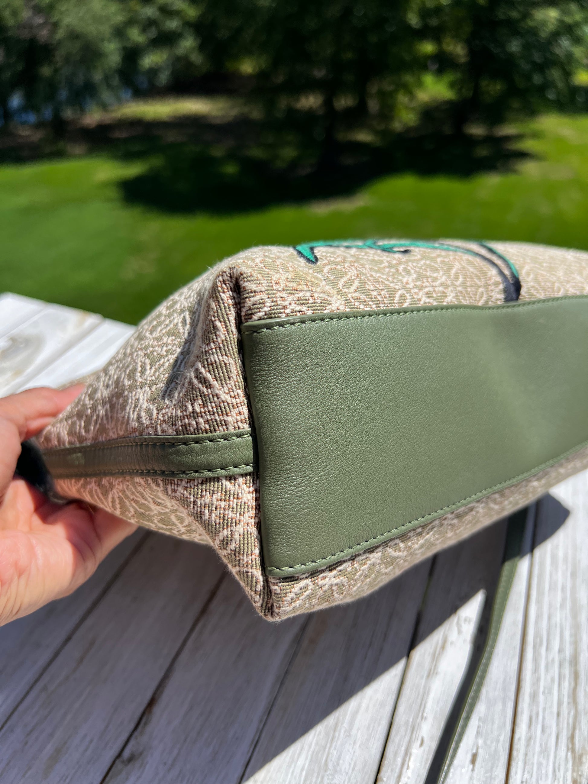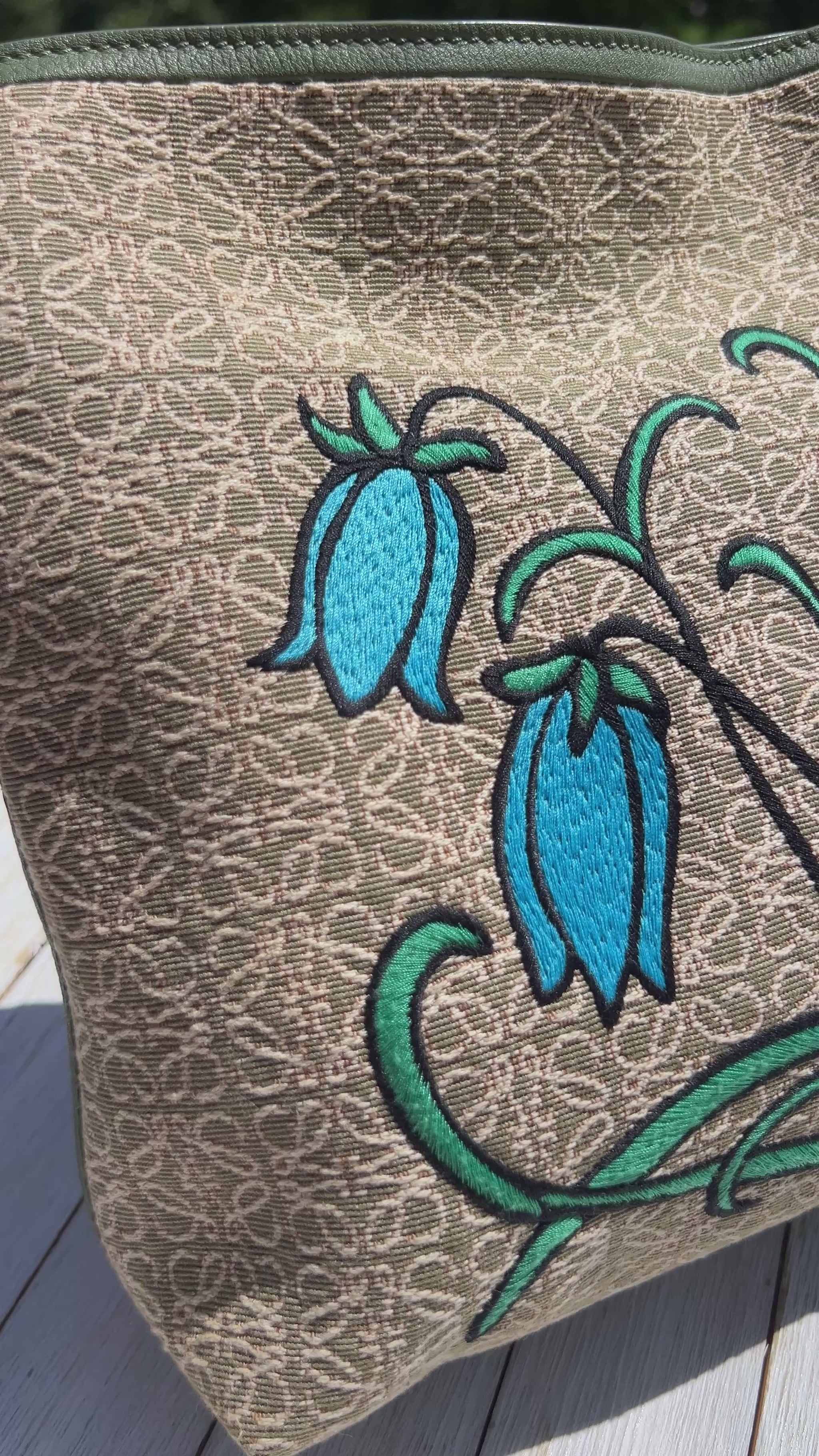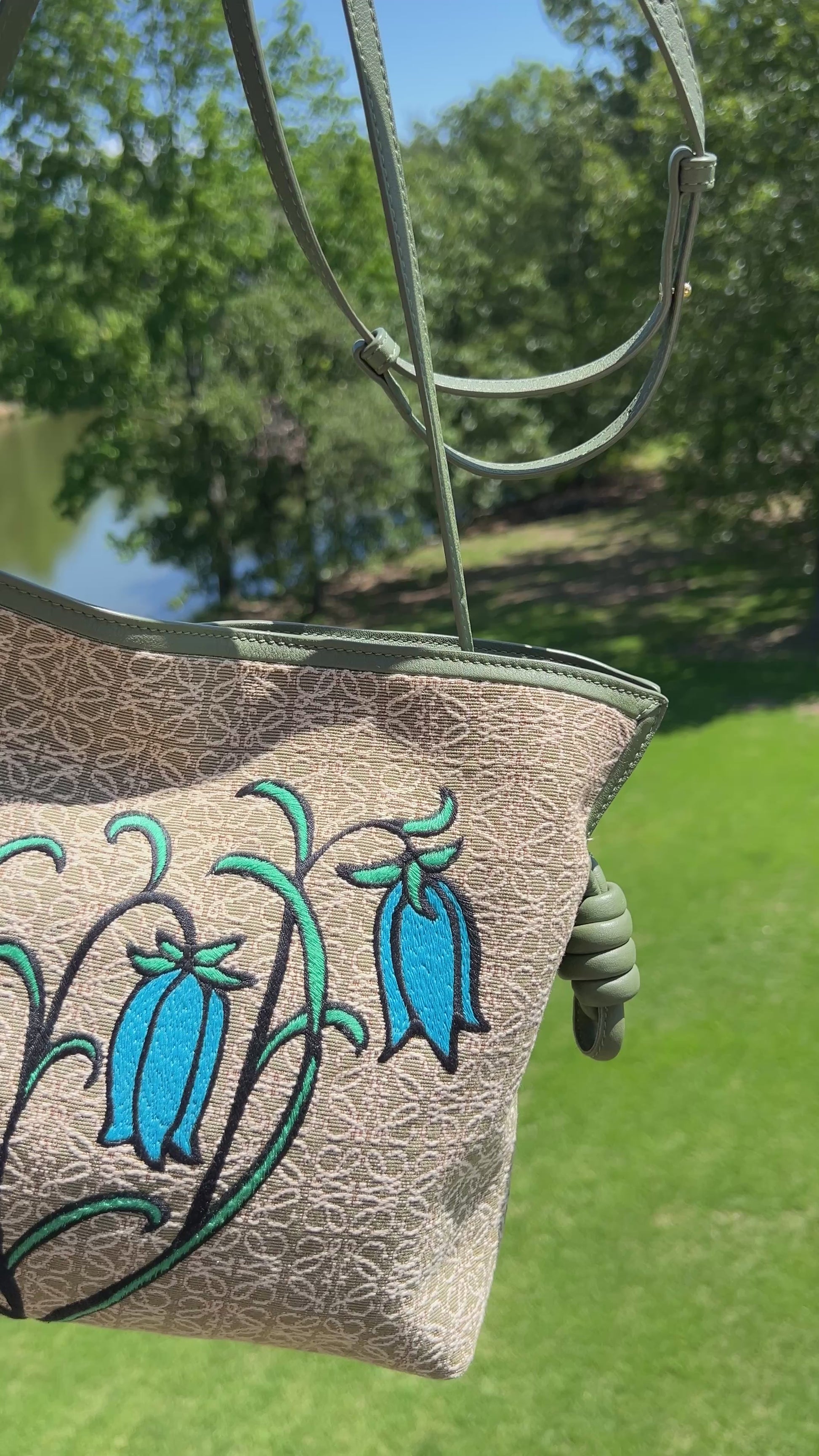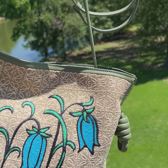Loewe Jacquard Anagram Calfskin Herbarium Embroidered Flamenco Knot Clutch Avocado Green