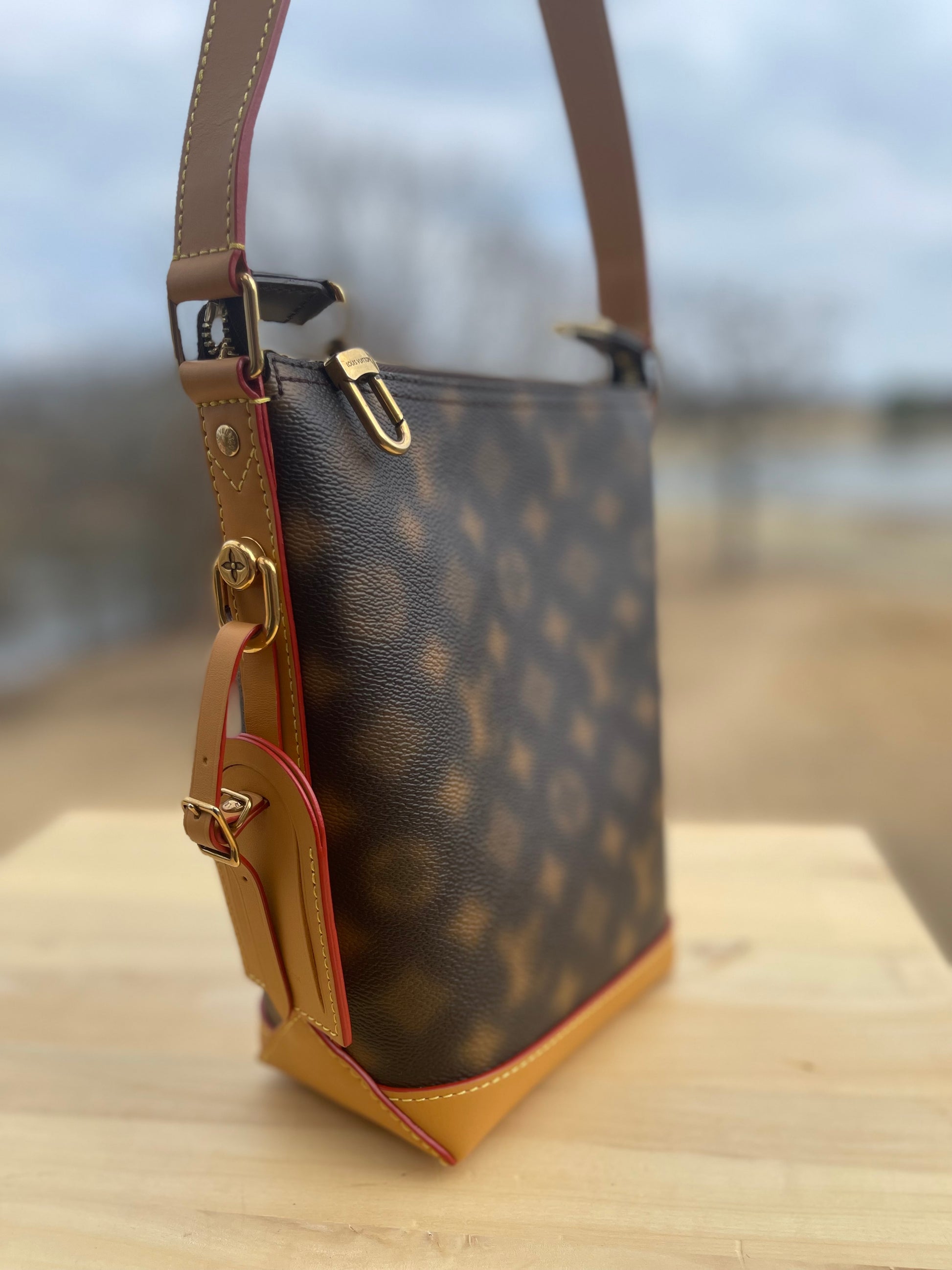 Sail away in style with the LOUIS VUITTON Monogram Blurry Hobo Cruiser PM. Made with iconic monogram toile canvas, a leather shoulder strap and base, and a spacious black fabric interior, this handbag is both chic and practical. Perfect for any adventure (or just running errands with flair)!