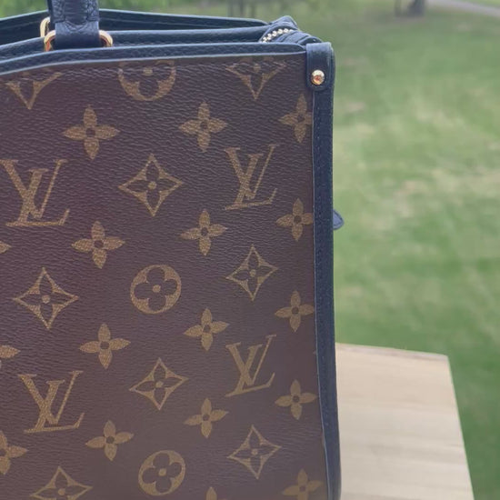 Crafted of traditional Louis Vuitton monogram canvas and dark blue calfskin leather trim, the Monogram Popincourt PM Marine is an elegant and versatile handbag. It features rolled leather top handles, an optional shoulder strap, and generous interior pockets for organization. The perfect accessory for any occasion.