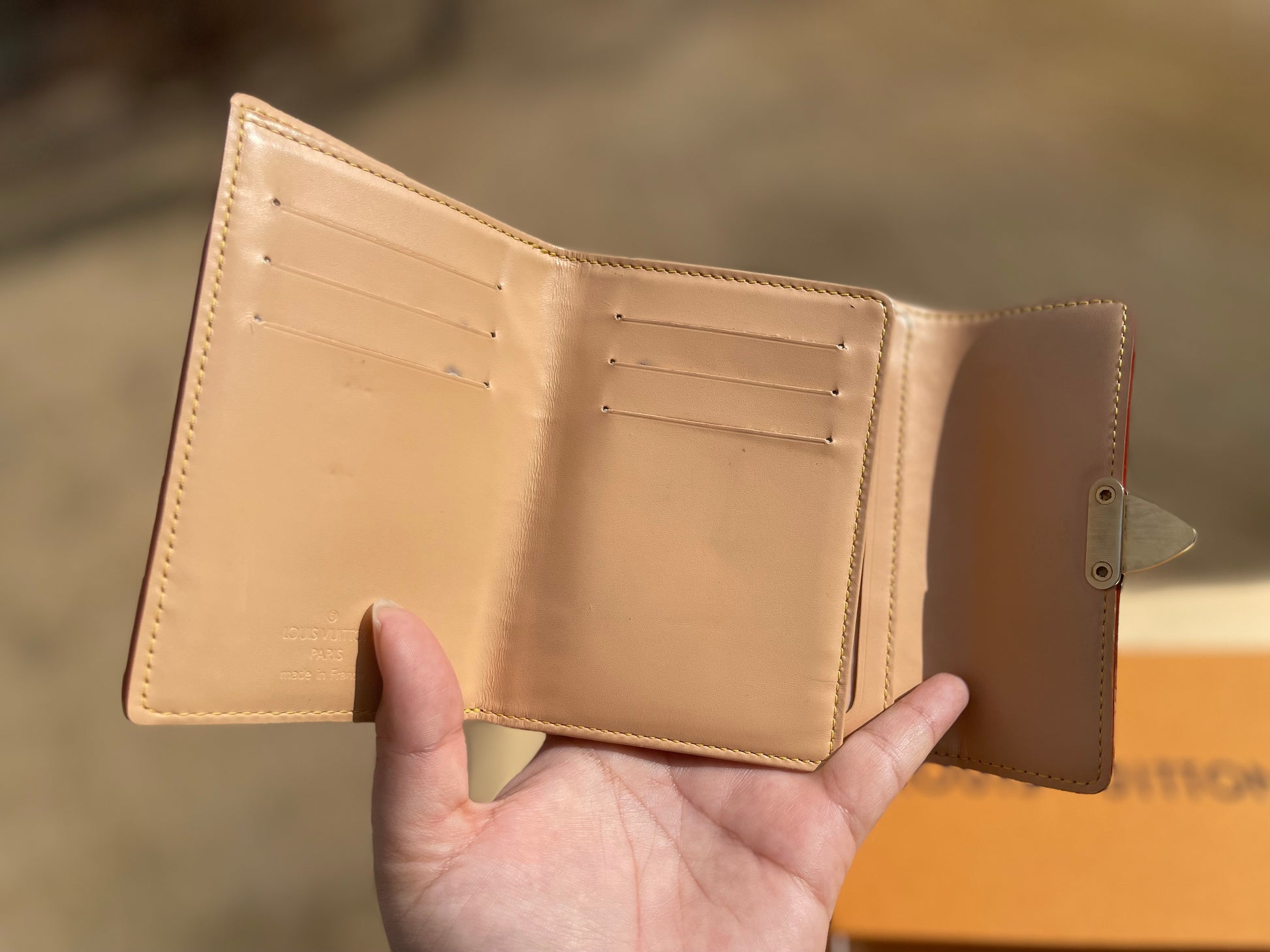 Inside, it opens to a thoughtfully designed interior with multiple card slots, a bill compartment, and a coin pocket — perfect for keeping your essentials secure in style.