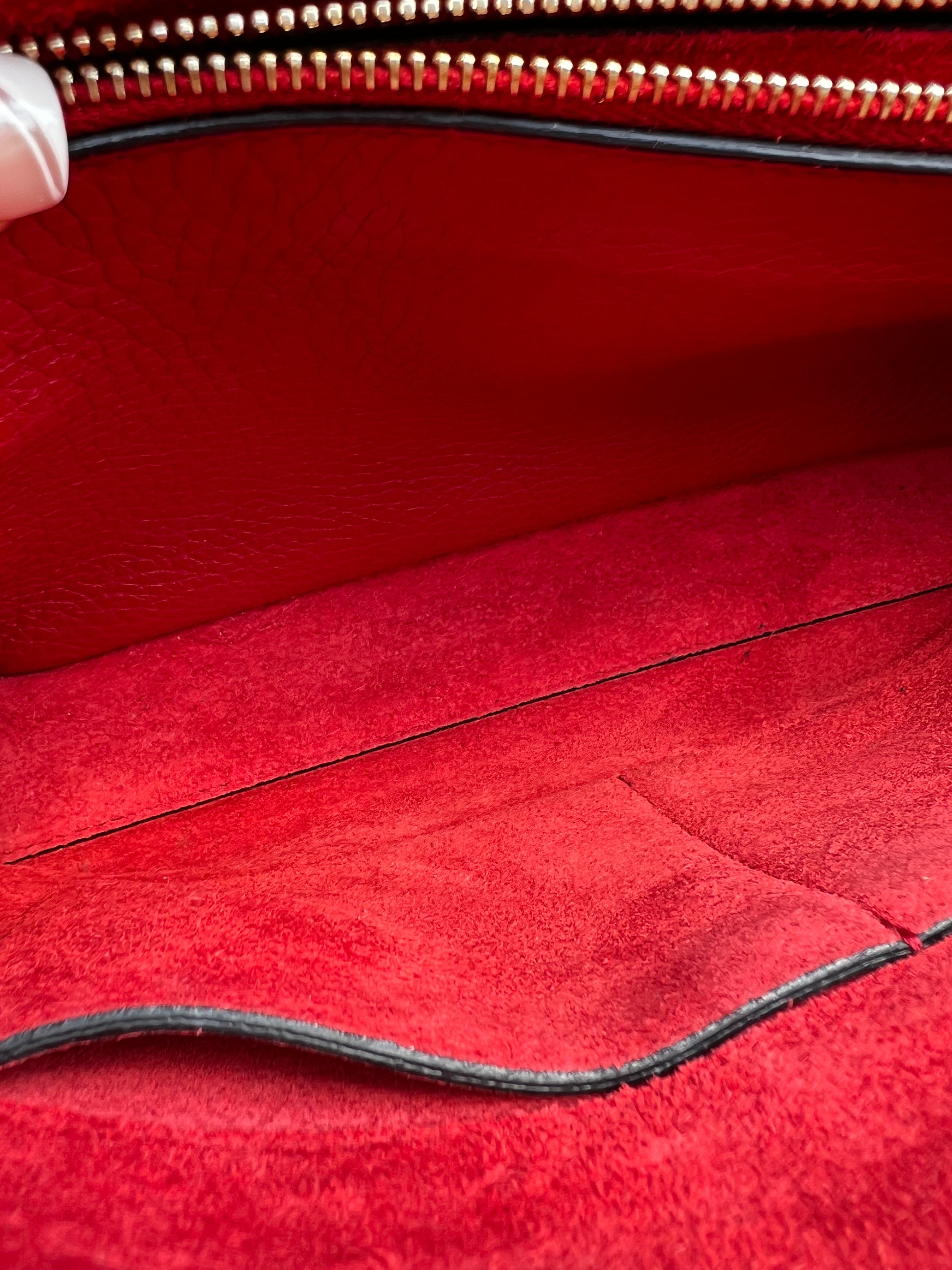 Pebbled calfskin leather in Rouge Pur (deep red)