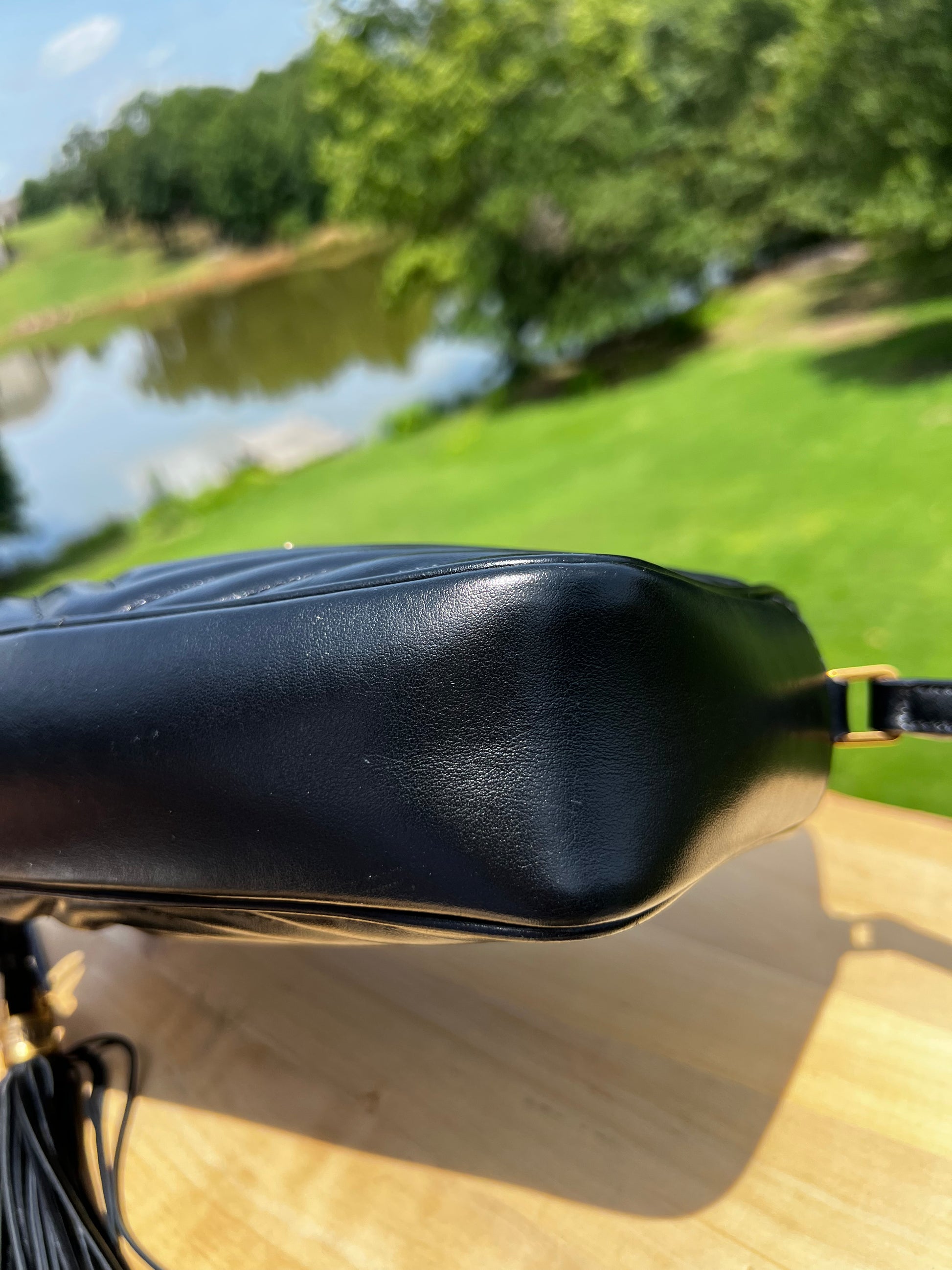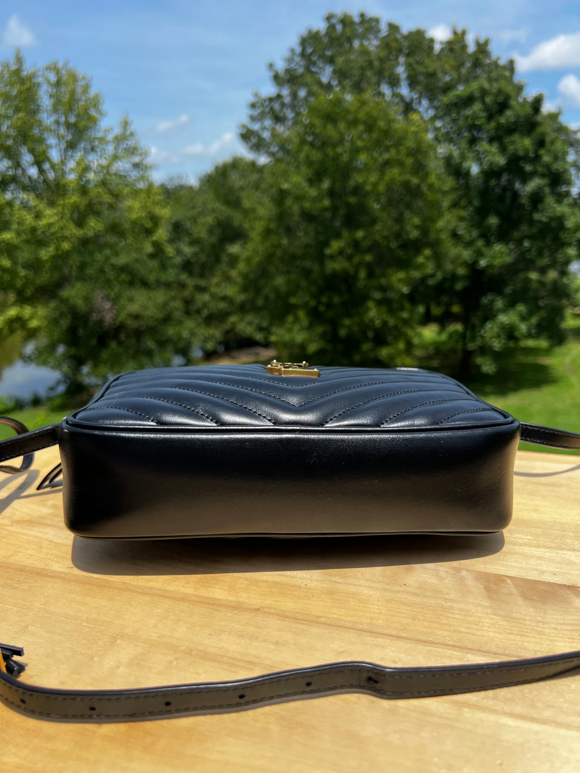 YSL Saint Laurent Calfskin Matelassé Monogram Lou Camera Bag (Black)